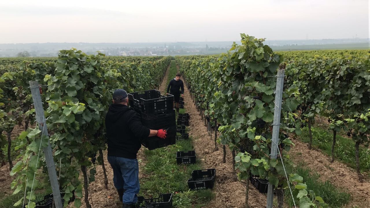 Selektionsweinlese für einen unserer Spitzenweine. Wir ernteten am 28. September die tollsten Spätburgunder Trauben mit durchschnittlich 106° Oechsle. Der Ertrag von rund 4500 kg auf knapp einem Hektar macht deutlich, wohin die Reise bei diesem Wein gehen wird: Das soll ein Spätburgunder Kracher werden.